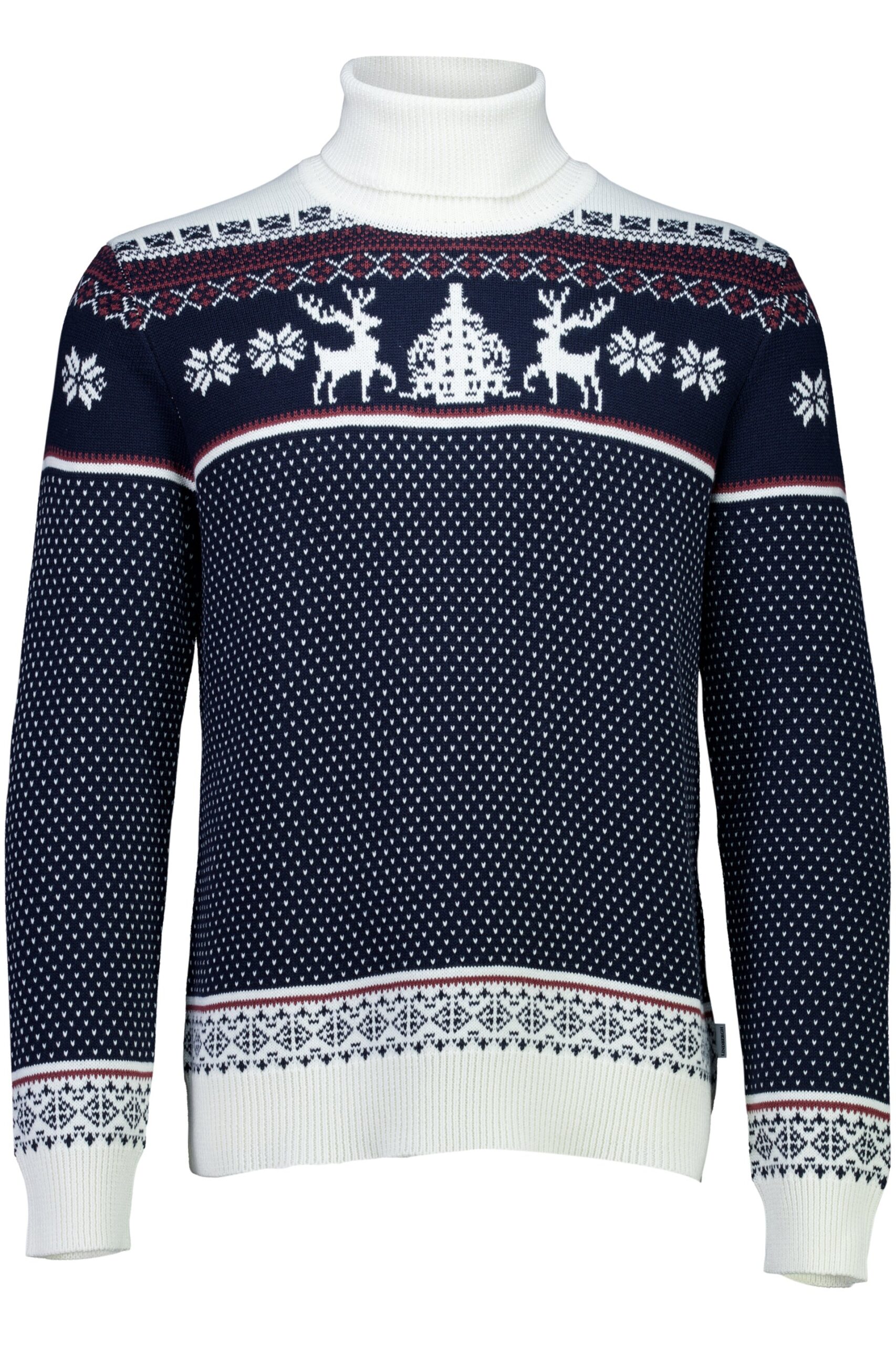 Julesweater fra Lindbergh. Trøjen har hyggeligt julemønster på for- og bagside og rullekrave. Logomærke nederst på venstre side. Lavet i relaxed fit, som er tætsiddende uden at være stram.